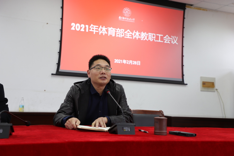 2月28日上午九点,体育部2021年第一次教职工大会在明故宫校区四楼会议室举行,会议由体育部主任陆森召主持,全体教职员工参加。
