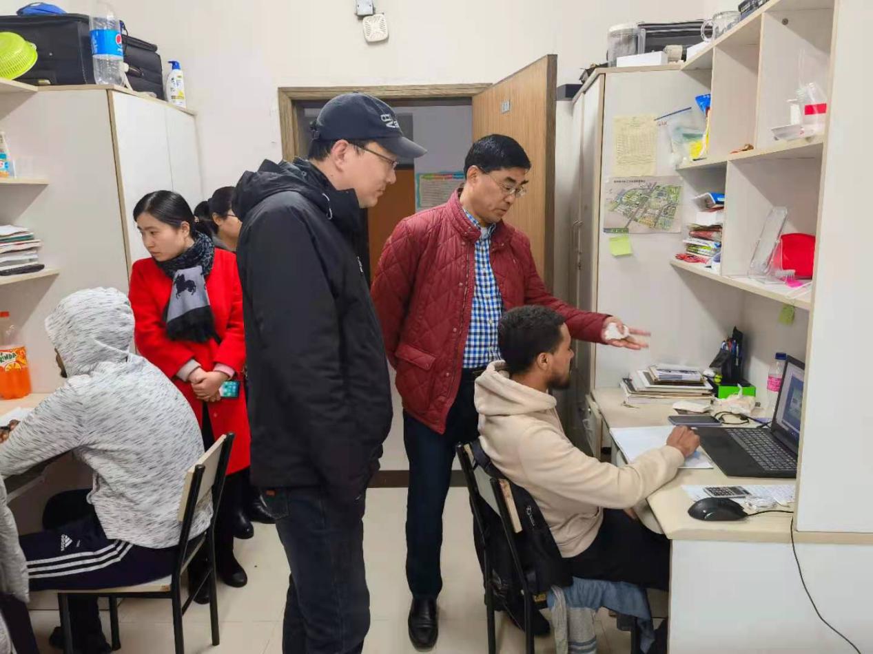 3月1日上午八点,国际教育学院金泉元院长一行走进将军路校区学生宿舍,实地看望正在线上学习的国际学生们,了解他们的学习及生活情况。