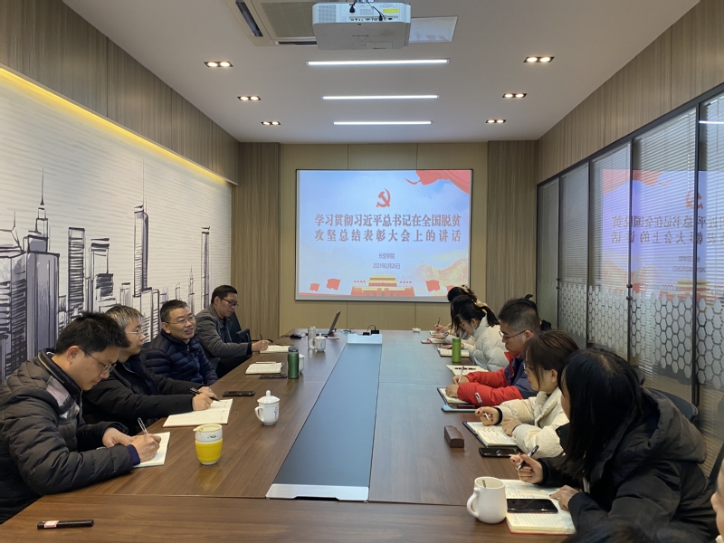 2月26日,长空学院教工党支部开展习近平总书记在全国脱贫攻坚总结表彰大会讲话的专题学习。全体教工党员参加此次学习,会议由长空学院党支部书记蒋彦龙主持。