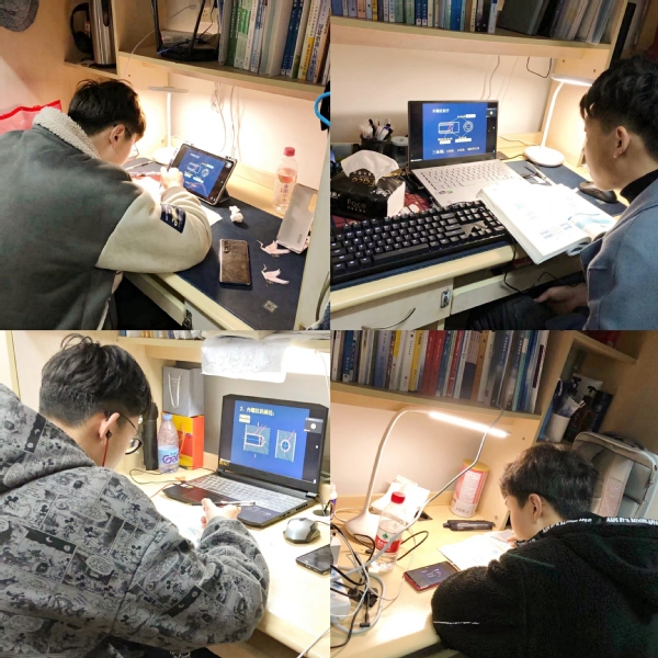 宿舍里,同学们早早打开电脑,准备好课本、笔记等,提前进入课堂,状态“满格”;认真听课,及时互动,认真做好笔记,态度“满分”。