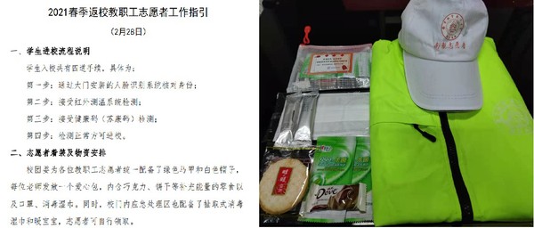 校团委精心组织,精准安排岗位排班,编写了《志愿者工作指引》,并为所有志愿者配备了服装、帽子、口罩以及包含巧克力、饼干、湿巾、暖身贴等物品的“暖心包”,切实保障志愿者的安全和志愿服务工作的有序进行。