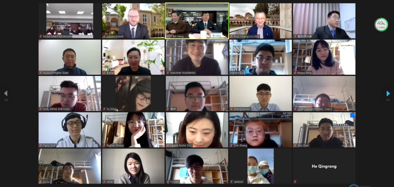 西澳大学副校长Tayyeb Shah和国际事务办公室主任Callum Cowell分别发表欢迎致辞。Tayyeb Shah表示,第一学期“海外学习中心”的成功运行让他对南航、对疫情下的合作新模式充满了自信,他非常感谢我校“海外学习中心”为西澳大学学生提供优质的远程学习空间和一流的教学团队,西澳大学十分重视与我校的合作伙伴关系,希望后期能有更为深入的国际合作。Callum Cowell代表西澳大学向我校在疫情期间对西澳大学的鼎力支持和帮助表示感谢。