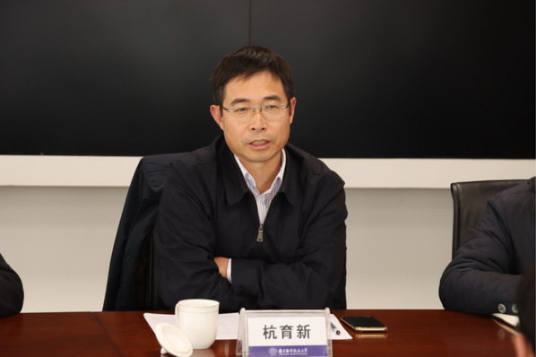 杭育新代表学校对王鹏一行表示欢迎。他指出,近年来学校信息化建设成果显著,特别是以需求为导向推动信息化工程实施,师生员工的幸福感获得感显著增强。他强调,进入新发展阶段,学校将深入推进两化融合,加快信息技术成果转移转化,助力学校“双一流”建设,希望江苏省通管局继续支持和指导学校建设发展。