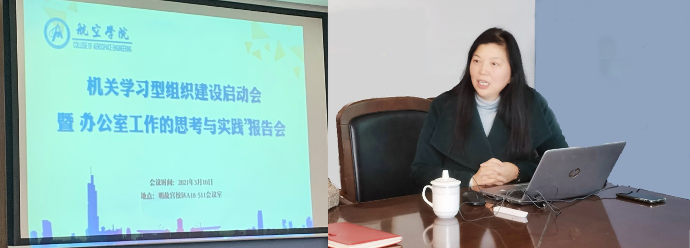 3月9号上午,航空学院在A18-511会议室召开“机关学习型组织建设启动会暨办公室工作的思考与实践报告会”,学院党政领导、院长助理和机关全体工作人员、学生辅导员参加了会议。学院特别邀请了校长助理、校党政办公室主任刘宇雷参加并给大家做工作交流。院党委书记冯绍红主持会议。