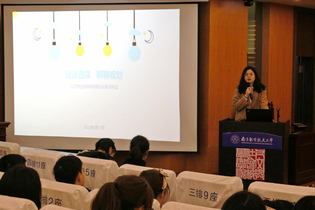 3月17日上午,人文与社会科学学院辅导员施俞辛在学院模拟法庭召开了“谈谈选择、聊聊规划”2020级本科生新学期年级大会。