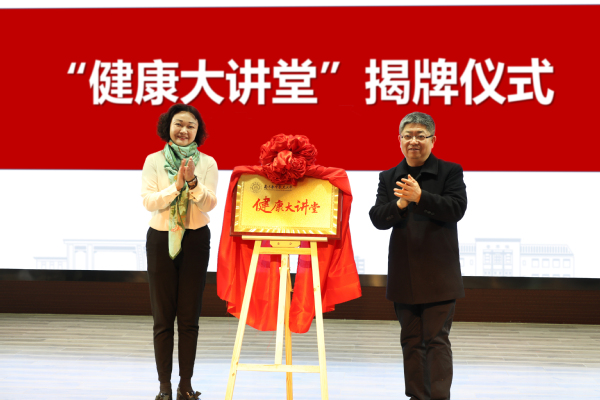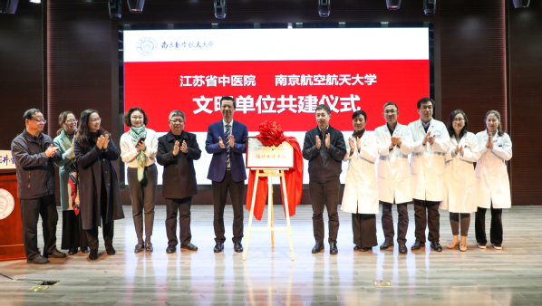 仪式中,杭育新和方祝元为南京航空航天大学与江苏省中医院两个文明单位成为“结对共建单位”揭牌。李遥和王晖为南京航空航天大学“健康大讲堂”揭牌。