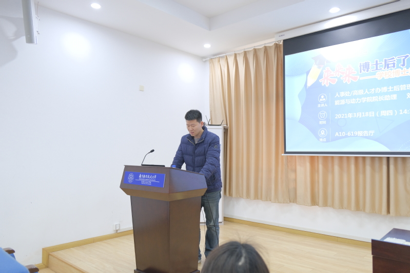 刘晓磊首先介绍了学校在博士后管理工作方面进行的有益探索和实践,从博士后制度的历史沿革引入,通过详实有力的数据支持,深入浅出地将中国博士后发展历程、学校博士后队伍培养现状、学校博士后队伍建设改革举措清晰明白地传递给与会人员。