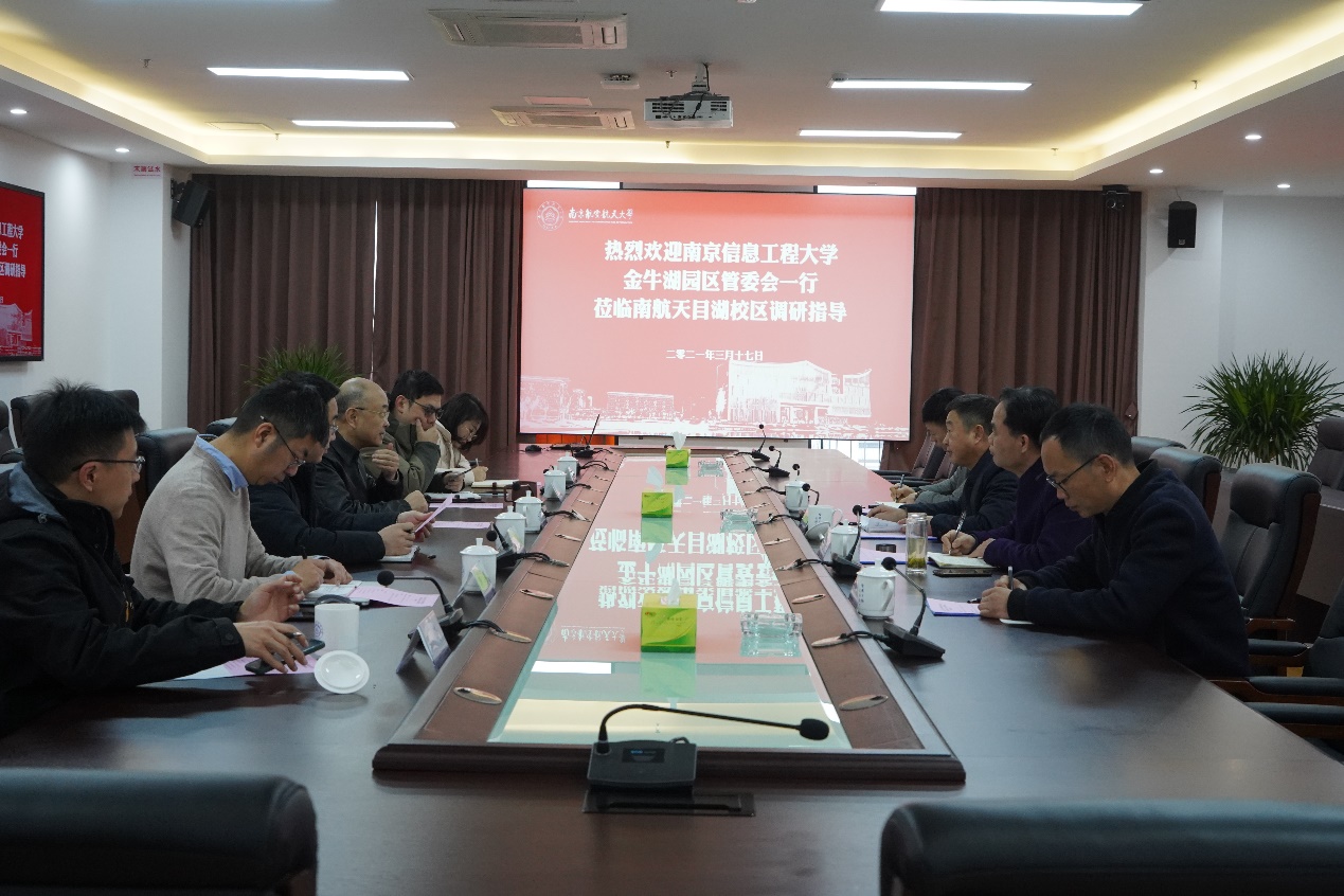 会上,郭爱民介绍了南京信息工程大学金牛湖园区的地理位置、建设规划等基本情况。他希望能学习借鉴南航天目湖校区运行管理的先进经验,更好地服务于今年九月入驻金牛湖园区的首批师生。