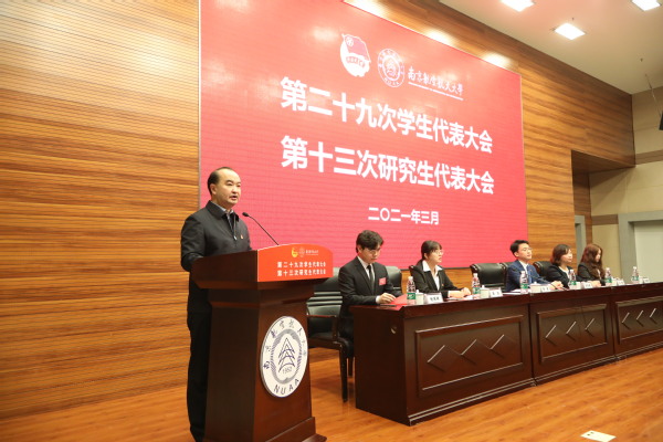陶勇代表学校党委对本次学代会、研代会的召开表示祝贺。他表示,在过去的一年里,我校学生会、研究生会在校党委和省学联的正确领导下,在校团委的具体指导下,团结带领南航青年学生抗击疫情,主动作为,为打赢疫情防控阻击战贡献了智慧和力量,同时积极响应全国学联改革号召,坚持依法依章开展工作,在促进学校深化改革、依法治校,服务学生成长成才中发挥了不可替代的作用。