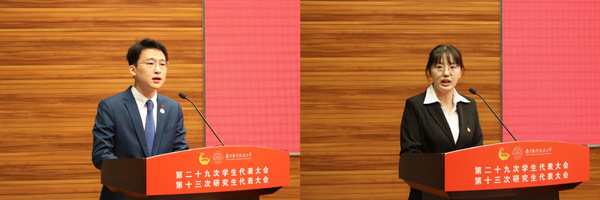 会上,学生会执行主席鲍禹桥同学代表第二十八届学生会委员会做了题为《肩负使命 赋能发展 团结全校同学为建设航空航天民航特色鲜明的世界一流大学贡献青春力量》的工作报告,研究生会执行主席朱娅蒙同学代表第十二届研究生会委员会做了题为《肩负新使命凝聚新力量 团结全校研究生奋力谱写建设航空航天民航特色的世界一流大学新篇章》的工作报告。