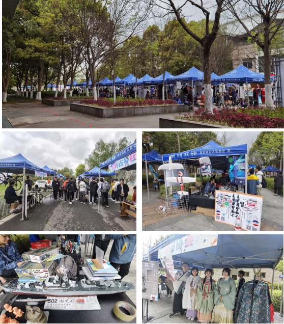 参与本次活动的学生社团涵盖思想政治、学术科技、创新创业、文化体育、志愿公益、自律互助类等多个类别。现场气氛热烈,各个社团争相竞演,宣传推介社团活动,展示社团建设的优秀成果。有相声社的同学一袭长衫,一逗一捧,贯口快板即兴演出,引得学生们纷纷驻足观望;有古琴社、摇滚社、吉他社的同学乐器比拼,展现才艺,招揽社员;有天文爱好者协会架起天文望远镜现场观摩太阳运动,展现宇宙奥秘;有长空模型社展示由社员亲手制作复原的南充舰和各类航空航天器模型,带领师生领略手工复刻的魅力。