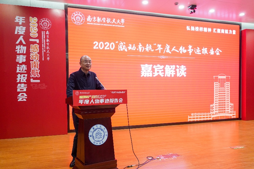 张新明在嘉宾解读环节中表示,每位年度人物都在各自的平凡岗位上做出了不凡成绩,希望天目湖校区师生学习年度人物胸怀祖国、忠诚担当的爱国精神,立德树人、甘为人梯的育人精神,敢想敢干、攻艰克难的创新精神,以实际行动迎接党的百岁华诞,以优异成绩谱写南航建设发展的新篇章。