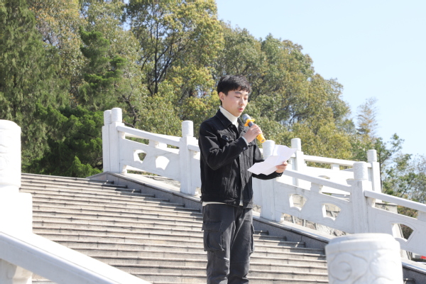 活动伊始,全体同学奏唱《中华人民共和国国歌》,来自0719601团支部的费天行代表全体同学诵读祭文,学生代表在烈士纪念碑前敬献花篮,各团支部的团员们依次敬献鲜花,并向烈士纪念碑深深鞠躬,表达对烈士的崇高敬意和深切悼念之情。