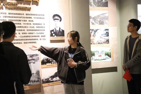 祭扫结束,各团支部在0720701团支部姜馨彤的带领下共同参观了溧阳市革命烈士纪念馆,姜馨彤既是南京航空航天大学民航学院的一名大一学生,同时还是溧阳市革命烈士纪念馆的一名志愿者讲解员。