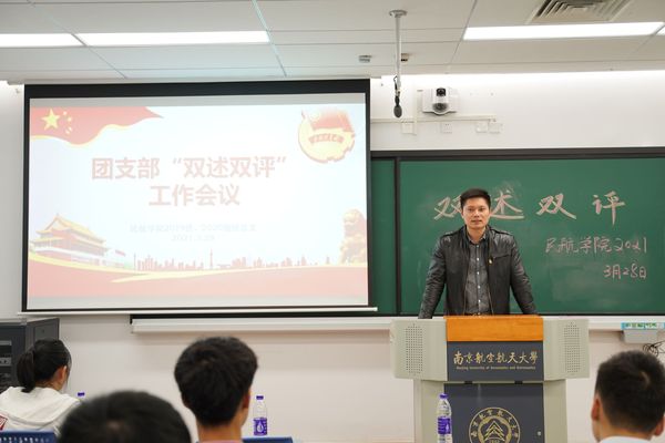 为深入实施“磐石工程”,加强团支部队伍建设,总结2020年度支部工作,充分激发基层团支部建设活力,3月28日晚,民航学院2019级、2020级团总支主要成员在巡天楼405教室开展2019级、2020级团支书“双述双评”工作会议。民航学院团委书记肖杰,学生辅导员赵慧文、王爱伟、高琦出席了本次会议。
