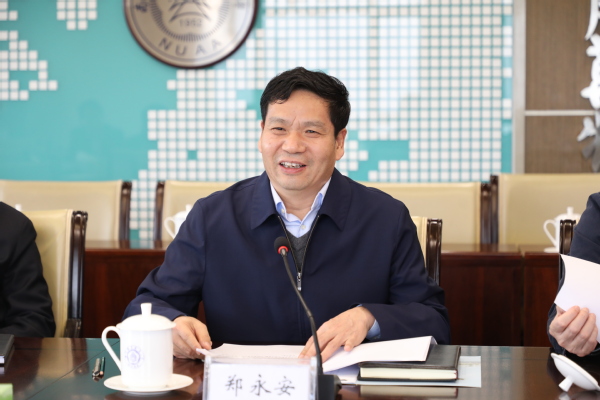 郑永安代表学校对吴艳华一行表示热烈欢迎,对国防科工局长期以来的支持和信任表示衷心感谢。他指出,南航始终坚守“为党育英才、为国铸重器”历史使命,一直在做“有特色”和“高水平”两篇文章,在人才培养、教育教学、科学研究、对外合作等方面取得了一系列标志性成果。他表示,南航将以承办“中国航天日”主场活动为契机,对广大青年进行爱国主义和理想信念教育,激励学子踊跃投身服务国防科技建设事业。他强调,面向“十四五”,南航将以习近平总书记关于教育的重要指示批示精神为遵循,持续强化“三航”特色,积极支撑服务构建新发展格局,不断推动学校内涵式、高质量发展,为实现高水平自立自强作出新的更大贡献,以优异成绩迎接建党100周年。