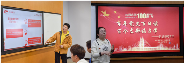116支部还准备了以洛川会议为原型的情景剧,配合视频内容,直观展现会议热烈的讨论氛围。随后,支部全体学生在倪海淘的带领朗读了《抗日救国十大纲领》,感情振奋、慷慨激昂,感受革命先辈激情燃烧的岁月。钱佳佳紧接着介绍了洛川会议的重要意义。李雪晴、徐梦林、张逢春、董昊翔等学生代表发表了对本次团课的学习体会,并结合身边人身边事以及国家时事等谈及了自己的启发与收获。