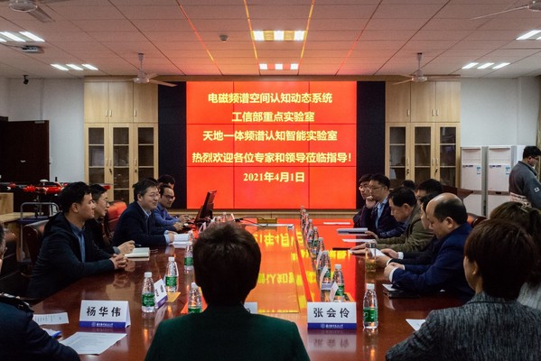 2021年04月01日下午,国家无线电监测中心党委书记、副主任李景春、江苏省工业和信息化厅副厅长池宇、国家无线电监测中心监测处副处长王志欣、北京东方波泰无线电频谱技术研究所所长张科、江苏省无线电监测站站长冯苏祥、江苏省无线电监测站副站长赵峰等领导及专家莅临电子信息工程学院天地一体频谱认知智能实验室进行交流指导。校长助理、实验室主任吴启晖携张小飞教授、周福辉教授、王威研究员、朱秋明副教授、李建峰副教授、贺荣老师、仲伟志副教授、李婕副研究员等对实验室的成果进行了现场展示与汇报。