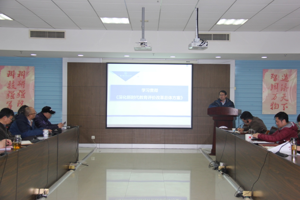 院党委副书记、副院长杨波结合个人体会,带领大家一起学习了《深化新时代教育改革总体方案》,从《总体方案》的出台背景、地位与意义,具体内容,贯彻落实要求,国家部委落实情况,我校推进落实情况等五个方面进行了深入解读,重点讲解了习近平总书记关于教育评价改革的重要论述、”完善立德树人,破除‘五唯’顽疾“的重大意义、”改进高校工作评价、改进高校教师科研工作评价“等重点任务。他提出无人机研究院要将《总体方案》与第四次党员大会确定的方向目标有机融合,认真研究,加快推进,切实发挥《总体方案》在研究院改革发展中的导向作用,为方案落实做出有特色的贡献。