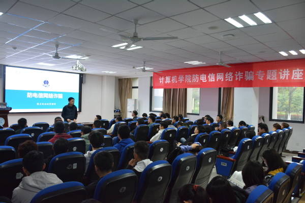 为切实提高学院学生防范意识与能力,4月2日,计算机科学与技术学院/人工智能学院在学院113报告厅成功举行防电信网络诈骗专题讲座,邀请学校保卫处治安管理科科长周栋栋为大家做专题教育。学院辅导员、各年级安全员等近百名师生代表参加此次讲座。
