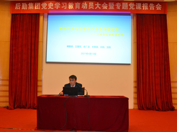 4月13日,后勤集团党史学习教育动员大会暨专题党课报告会在明故宫校区科学馆报告厅举行。后勤集团党政领导以及全体党员,主任助理及以上干部等130余人参加会议。大会由集团副总经理俞广波主持。