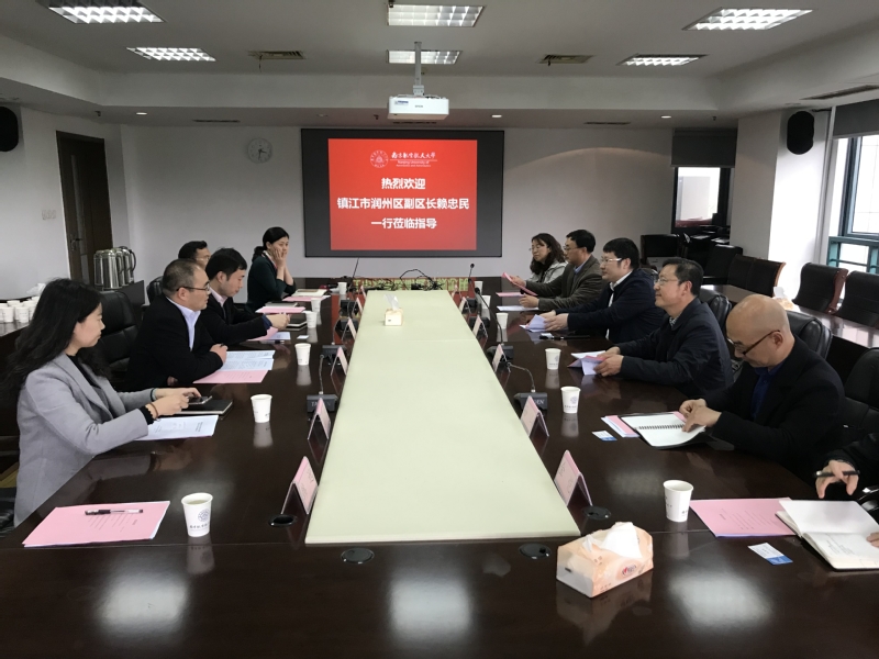 4月12日下午,镇江市润州区副区长赖忠民、组织部常务副局长徐文军、科技局局长江金保、副局长孙山、副局长庄品、官塘桥街道办事处副主任金恺一行到综合楼洽谈我校与镇江润州区合作事宜,我校科研院高新处副处长孔祥浩、经济与管理学院副院长王子龙、技术转移办公室主任马一殴、MBA教育中心执行主任杜刚、招生与品牌推广办公室主任徐倩、技术转移办公室项目主管韩远参与会议。