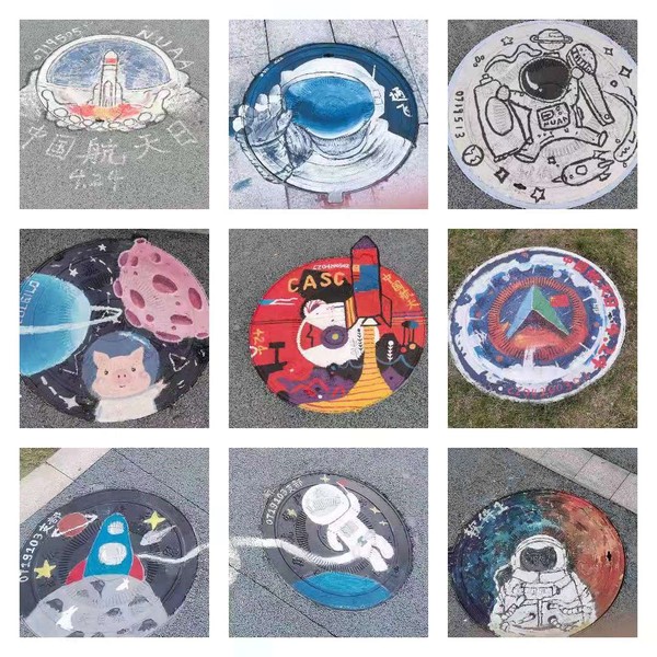 小小的井盖上承载着同学们航天报国的伟大梦想,此次井盖彩绘活动的成功举办,充分展示了天目湖校区学生的风采与活力,绘出“发展航天事业,建设航天强国”的靓丽画卷。