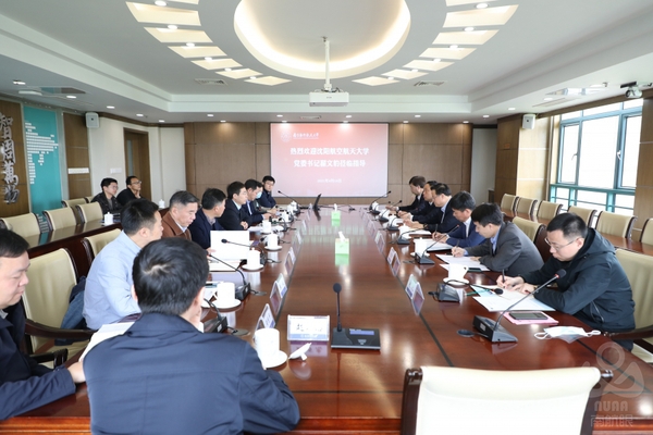 4月16日,沈阳航空航天大学党委书记翟文豹带队来我校调研。校党委书记郑永安会见翟文豹一行,校党委副书记、纪委书记杭育新出席座谈会。