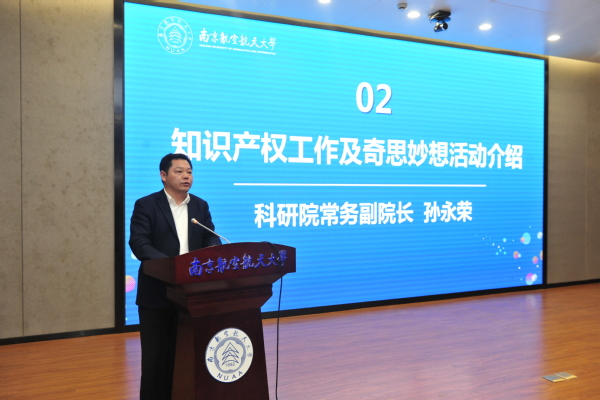 科研院常务副院长孙永荣教授介绍了我校知识产权工作情况以及十二届大学生奇思妙想科技创新活动取得的良好成效,着重强调了活动对提升大学生科技创新能力的重要性,同时鼓励同学们积极参加第十三届大学生奇思妙想科技创新(专利申报)活动。