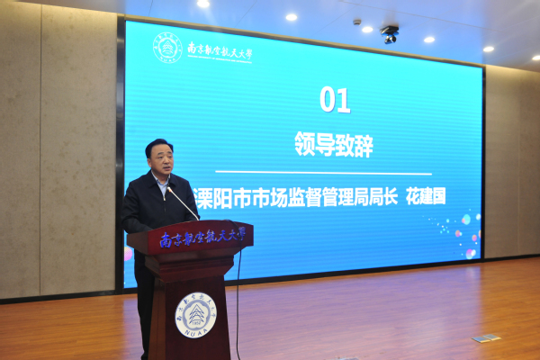 启动仪式上,溧阳市市场监督管理局局长花建国介绍了溧阳的知识产权情况以及相关政策,希望南航和溧阳在知识产权工作上深度合作,并表示将大力支持南航大学生科技创新工作。