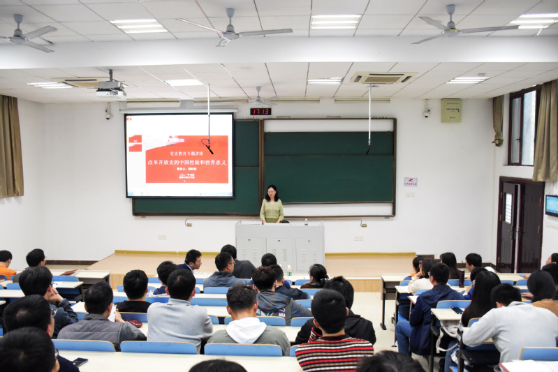 陈红桂以“中国改革开放的历史经验与世界意义”为题,从“反对历史虚伪主义、树立正确历史观”“改革开放史基本脉络及伟大成就”“中国改革开放成效的原因与经验”“改革开放的世界意义及其未来走向”等四个方面展开讲授,带领大家回顾了中国共产党推进改革开放的历史进程,讲述了40多年改革开放的光辉历程,阐述了改革开放的重大意义。参加讲座的师生表示学习了这堂生动的改革开放史教育课收获颇多,对党史有了更深的了解,也受到了一次实实在在的教育。