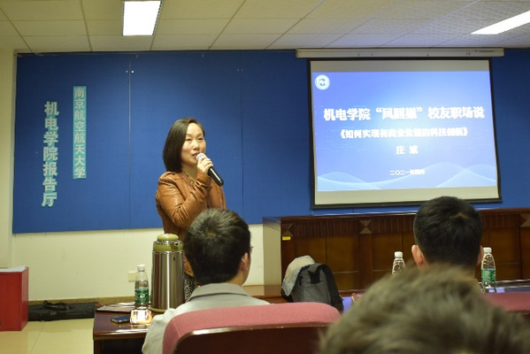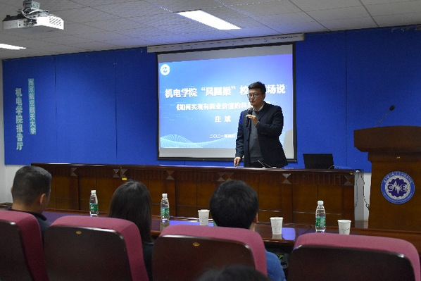 为提高学生的职业能力、事业发展能力,增强职场认知,4月19日晚,机电学院在明故宫校区A15-522报告厅举办“如何实现有商业价值的科技创新”主题讲座。本次讲座由机电学院陆蔚华老师主持,主讲人机电学院飞行器制造工程专业94级院友、深圳创怀医疗科技有限公司董事长庄斌,飞行器制造工程专业94级院友黄宇凯、陈虹桥、机电学院陆凤霞老师、研究生辅导员徐广超、2017级本科生辅导员聂敏敏及130余名学生参加了此次活动。