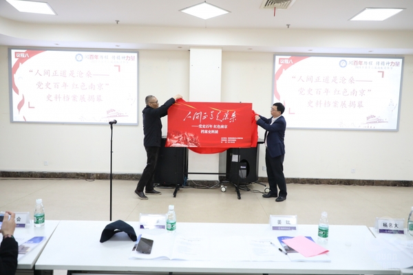 本届读书节,图书馆还联合南京市档案馆共同举办了“人间正道是沧桑——党史百年 红色南京”档案史料展。展览分为红色初心、中流砥柱、黎明破晓、开天辟地、改革开放五个部分,以档案史料的视角讲述中国共产党在南京的探索足迹,让广大师生走近红色档案,在观展中学习党史,学史明理、学史增信、学史崇德、学史力行。姜斌与张军共同为展览揭幕。