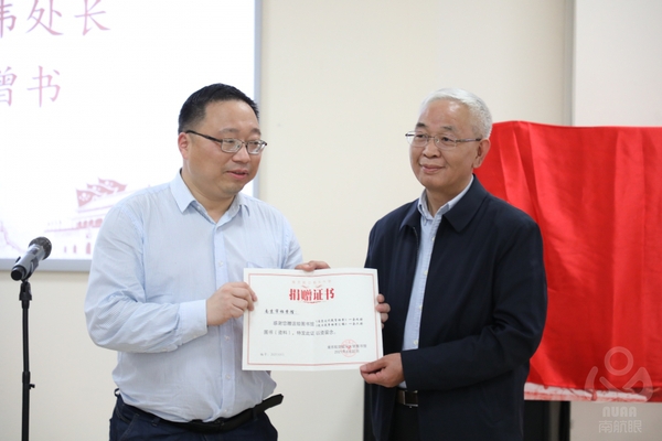 开幕式上,南京市档案馆王伟处长向南航图书馆赠送两套有关南京历史的珍贵档案书籍,图书馆党总支书记杨名大代表图书馆接受捐赠,并颁发捐赠证书。南航附小学生朗诵了《红船》,稚嫩童声诵出孩子们对党的热爱;南航师生组合朗诵了《有一首歌》,深情表达没有共产党就没有新中国。随后,嘉宾代表为图书馆2020年度优秀读者获得者颁发了证书,优秀读者代表、材料科学与技术学院硕士二年级学生祖嘉琦发言。优秀读者评选是为了表彰2020年度在我校图书馆借阅、荐购排名领先,各类读书类活动中表现突出以及图书馆从事学生助理、志愿服务中表现优秀的同学。