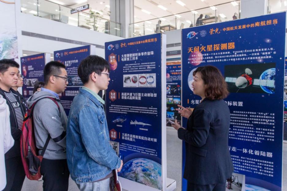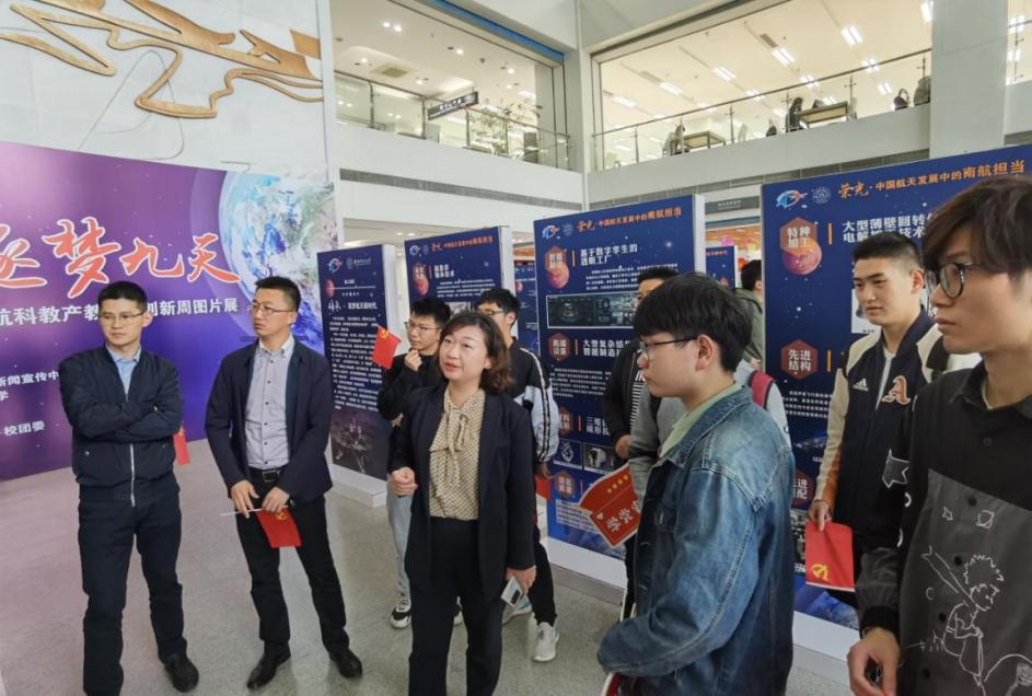 师生一行来到将军路校区“扬帆起航、逐梦九天”中国航天日主题图片展,在中国航天的发展史中读懂中国共产党的奋斗史。在展区,支部书记王静为同学们上了一堂题为《迎建党百年·扬航天精神》的沉浸式主题党课,为同学们解读了中国航天史中的南航足迹。在参观中,王静尤其为同学们着重介绍了刚刚斩获2021年江苏省五四青年奖章集体的我校“天问一号”火星探测器信标装置研制团队。作为全国唯一独立承担“天问一号”火星探测器单机载荷的高校团队,其攻克了高冲击防护、极限空间电子系统设计、极限能源热控等多项关键技术难关,仅用不到2年的时间便实现信标项目“从无到有”,将有效助力我国首次火星探测任务的成功。研发过程中,南航青年党员用奋斗和奉献回应着总书记对青年“青春是用来奋斗的”殷切期盼,是南航共产党人为祖国的航天事业助推奋斗的缩影。她鼓励全体党员和同学们学习党史知识,弘扬航天精神,将个人理想融于社会理想,将所学知识运用到祖国建设的实践中来。
