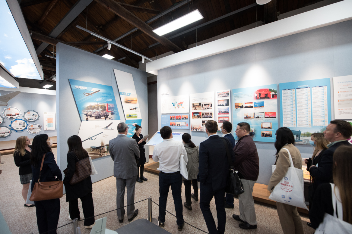 在航空航天馆,代表们了解了航天器种类及发展历程,并参观了飞机整机展厅。学生讲解员流利的英文表达和娴熟的专业知识也得到了代表们的广泛赞扬。