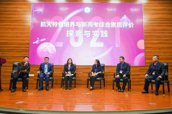 研讨会开展了沙龙讨论环节,南京航空航天大学招生办公室主任宋凯主持了“航天特色培养与新高考综合素质评价的探索与实践”主题沙龙,来自北京航空航天大学、哈尔滨工业大学、哈尔滨工程大学等6所高校的招生办公室负责人结合高考综合改革,就如何推进高中人才培养和高校人才选拔的有效衔接,促进创新人才贯通式培养,充分运用强基计划、综合素质评价等招生类型实现多元录取,选拔出更加符合高校发展特色的人才展开充分讨论。主持人宋凯讲述了南京航空航天大学建校69年来与祖国航空航天事业休戚与共的发展历程,介绍了南航的在推动全国航空航天民航领域大发展所做的突出贡献。他呼吁广大中学要更加关注像南航一样为国铸剑、为国育才的工信七子,协力为祖国输送人才。沙龙环节还就中学生如何参与航天科普活动、形成跨学科的航天科学教育课程体系等热点话题进行了分享。