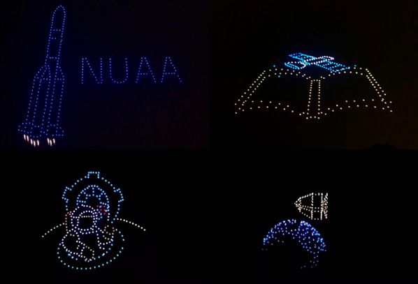 20点30分,300架无人机准时起飞,点亮南航夜空。火箭与NUAA、书本与卫星、宇航员出舱、天巡一号、嫦娥工程……一幅幅美轮美奂的图案,引得现场观众一阵阵的欢呼,也代表着一代代的南航人一直在广阔的宇宙中不断探索,一步步从理论研究迈向实践成功,为祖国航天事业发展不懈奋斗,贡献南航智慧和南航力量,奋力成长为祖国航天事业的中坚力量。