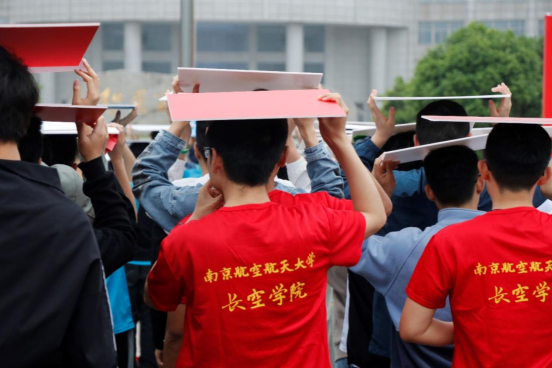 在“中国航天日”主题升旗仪式上,长空学院学生代表组成的火箭方阵随着“空天报国,志在长空”嘹亮口号展开,宛如腾飞的长征号火箭,象征着南航学子为祖国三航事业发展、为中华民族伟大复兴拼搏奋斗的精神追求与信念。