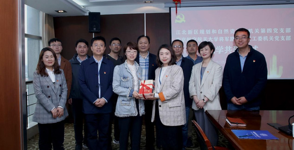 随后,双方支部举行联学共建仪式。将军路校区党工委机关党支部书记李丽向江北新区规划和自然资源局机关第四党支部书记马卓祎赠送党史学习相关书目。