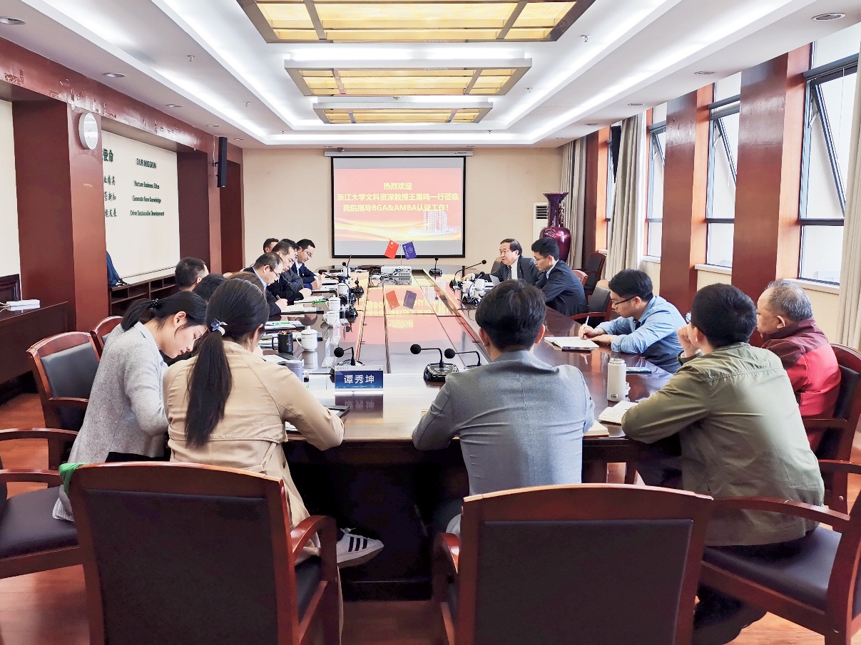 4月28日下午,经济与管理学院在经管楼604会议室举行BGA国际认证研讨会。浙江大学文科资深教授、浙江省特级专家、浙江大学管理学院博士生导师、国际丝路创业教育联盟理事长、AMBA&BGA国际认证协会中国顾问与中国区总协调人王重鸣莅临指导BGA国际认证相关工作,教务处副处长朱建军、经济与管理学院院长周德群、党委书记苏州、学院副院长王子龙、院长助理兼认证办公室主任谢嗣胜、教学办主任田苑娜、MBA教育中心执行主任杜刚以及相关人员参加会议。