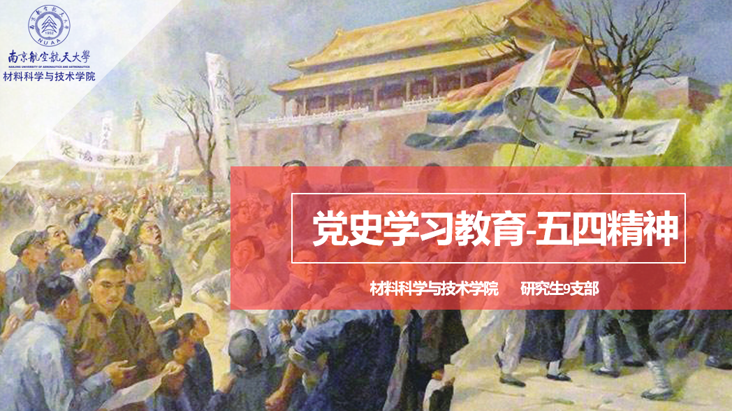4月28日,在五四运动102周年即将来临之际,研究生9支部针对五四运动的发展过程及意义开展了主题学习活动。“历史是最好的教科书。对我们共产党人来说,中国革命历史是最好的营养剂”本次活动从五四运动的先声:新文化运动切入,通过视频学习《中国精神:五四精神》结合《中国共产党简史》章节选读形式进行展开,支部成员在本次活动分享自己的见解,这让大家对于五四运动的历史事件及伟大意义有了进一步的了解。