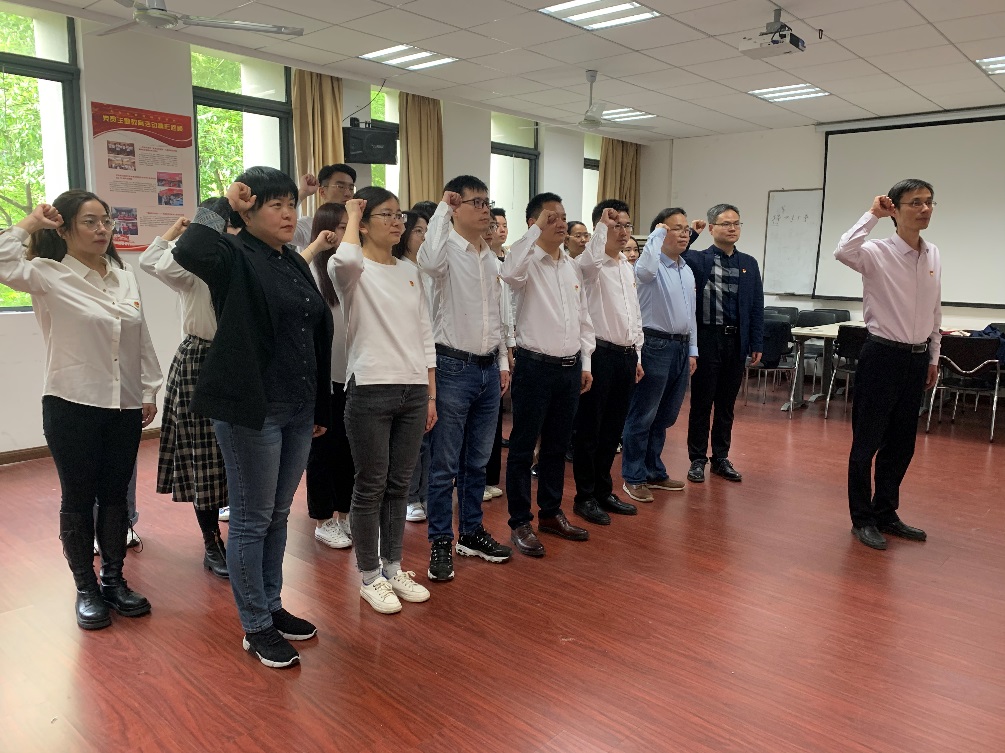 为进一步推动学院党史学习教育工作扎实开展,宣讲会前,学院组织党委理论学习中心组成员及师生党支部书记、支部委员做了专题动员。刘虎强调,中心组成员、基层党支部委员要率先垂范,带头认真开展学习,做到学有所思、学有所悟、学有所得。同时,要把学习党史同总结经验、观照现实、推动工作结合起来,同解决实际问题结合起来,切实将学习成效转化为工作动力和成效。随后,师生党员一起重温了入党誓词。