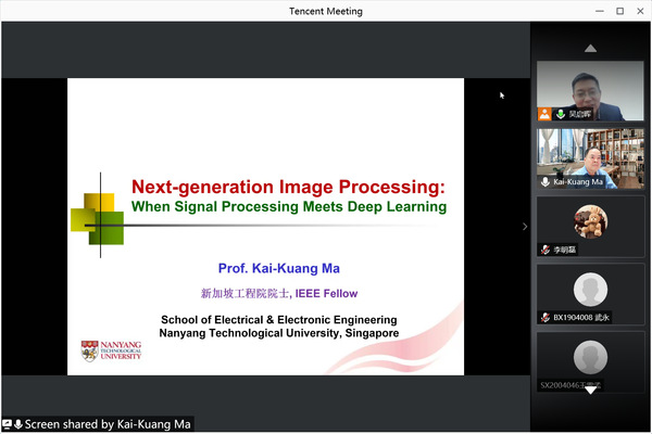 5月7日,来自新加坡南洋理工大学的MA Kai-Kuang教授(马凯光,新加坡工程院院士,IEEE Fellow)应邀为电子信息工程学院师生做了题为“Next-Generation Image Processing: When Signal Processing Meets DeepLearning”的线上学术报告。会议由吴启晖教授主持,220余名师生通过腾讯会议线上参会的方式聆听了报告。