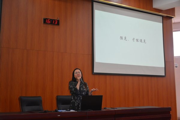 接着,沈雪萍通过小游戏引出“预见,才能遇见”的观点,强调大学生树立明确目标的重要性。她建议意向就业的同学要充分利用学院“职业素质训练营”提供的资源,提高自身综合素质能力,为抓住秋季招聘高峰期的就业机会做好准备;建议意向考研的同学合理选择报考学校,以科学的精神和思维迎接考研挑战。