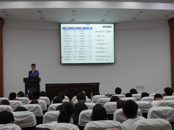 答辩会上,毕业生们从专业学习、科技创新、社会工作、志愿服务等方面分享了大学四年以来的收获与感悟,并表达了对学校、学院的感激之情,在场的低年级学生深受鼓舞。自律自强,竞赛、科创、志愿教员样样不落,12门课程满分的周长宇,用质朴的语言向大家展示了自己在学习上的那份执着与坚持;手握各类科创和竞赛奖项,两次出国交流学习的“科创达人”张天立,通过亲身经历分享了自己保持专业学习和科技创新齐头并进的秘诀;以江苏省前五名的成绩进入全国大学生数学竞赛决赛,主持参与五项大学生创新项目的张肖纬,将自己的大学四年生活比喻成围棋的各个阶段,讲述了自己的成长经历……8位优秀学子的大学故事与成长之路深深打动了在场的每一位同学。答辩结束后,团委书记欧珊对此次答辩会进行了点评,寄语低年级学生向优秀榜样学习,全面发展,收获多彩的大学生活。