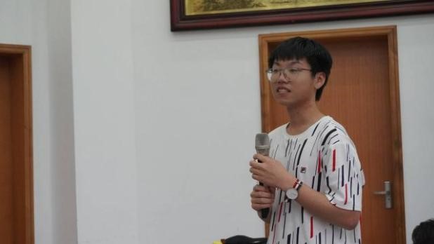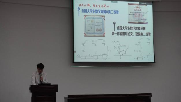 竞赛达人张肖纬,从学习和竞赛方面分享了自己的心得。他鼓励同学们勇于尝试,“实践出真知”,在竞赛中完成从理论到实践的过渡,学会应用自己习得的知识于实际问题。