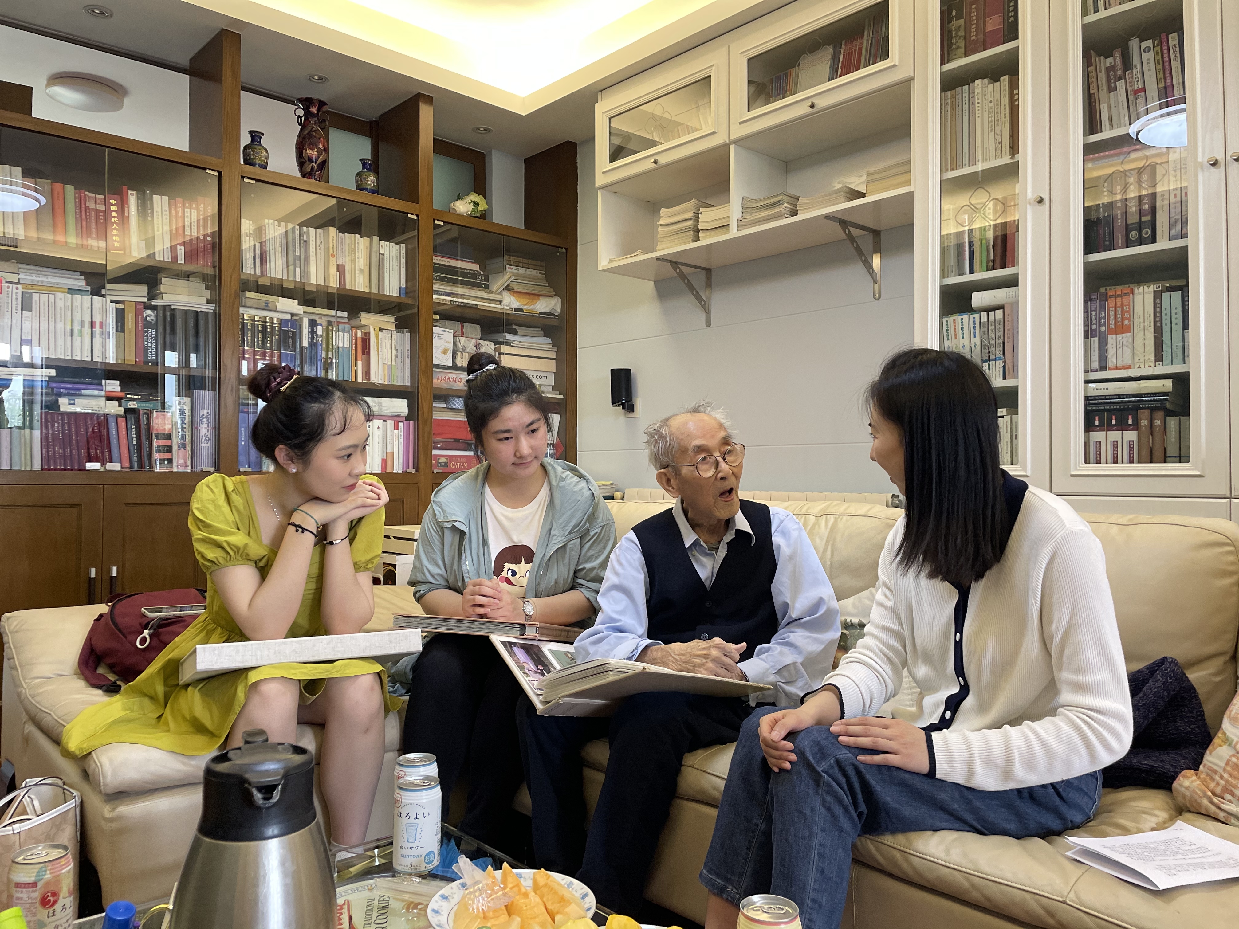 一行人来到许老先生家中,梁薇代表学院给许老送去问候,表达了对许老身体的关心,并向许老汇报了学院近期的发展以及学生取得的可喜成绩。看见许老年逾百岁仍然精神矍铄,同行人员都感到十分欣喜。