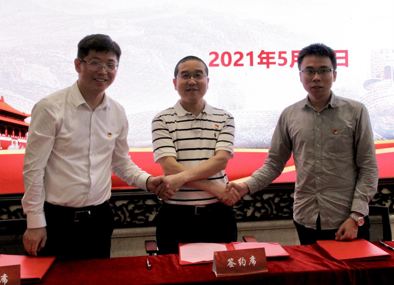 南京市质检院党总支宣传委员胡飞杰同志、无人机院研究室第二党支部书记何成同志和交行玄武支行党支部书记王超同志共同签署结对共建协议,并互赠共建牌匾。