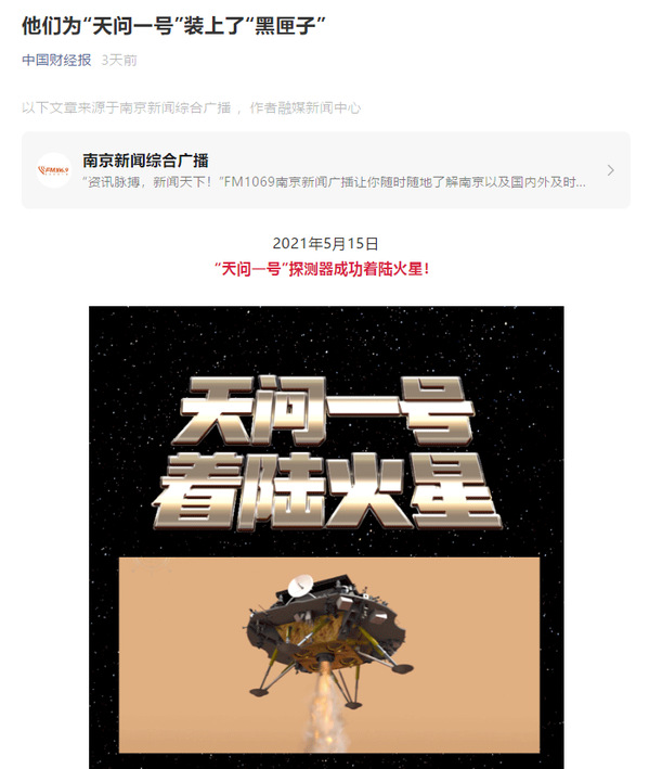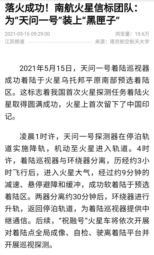 新华社:落火成功!南航火星信标团队:为“天问一号”装上“黑匣子”
